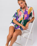If you’re looking for a top with versatility, then this one is perfect for you. It’s a simple design with a vibrant feel and being button down it allows for various styles. It can be worn as a jacket, tied as a crop top, half buttoned as a deep v neckline or just buttoned up. This top has an abstract design, button down, sleeves, collared, various shades of color, forgiving fit and a great length. Runs TTS: model is 5’7 126 lbs. 32” bust line wearing a small. 100% polyester