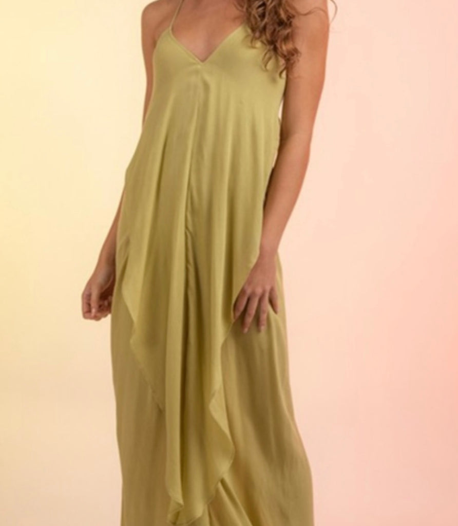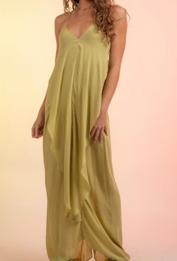 Avacado Green Back Drape Maxi Dress