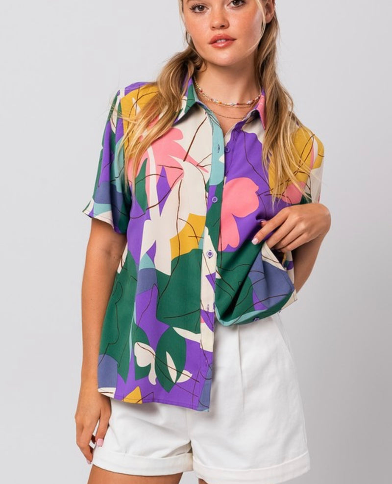 If you’re looking for a top with versatility, then this one is perfect for you. It’s a simple design with a vibrant feel and being button down it allows for various styles. It can be worn as a jacket, tied...
