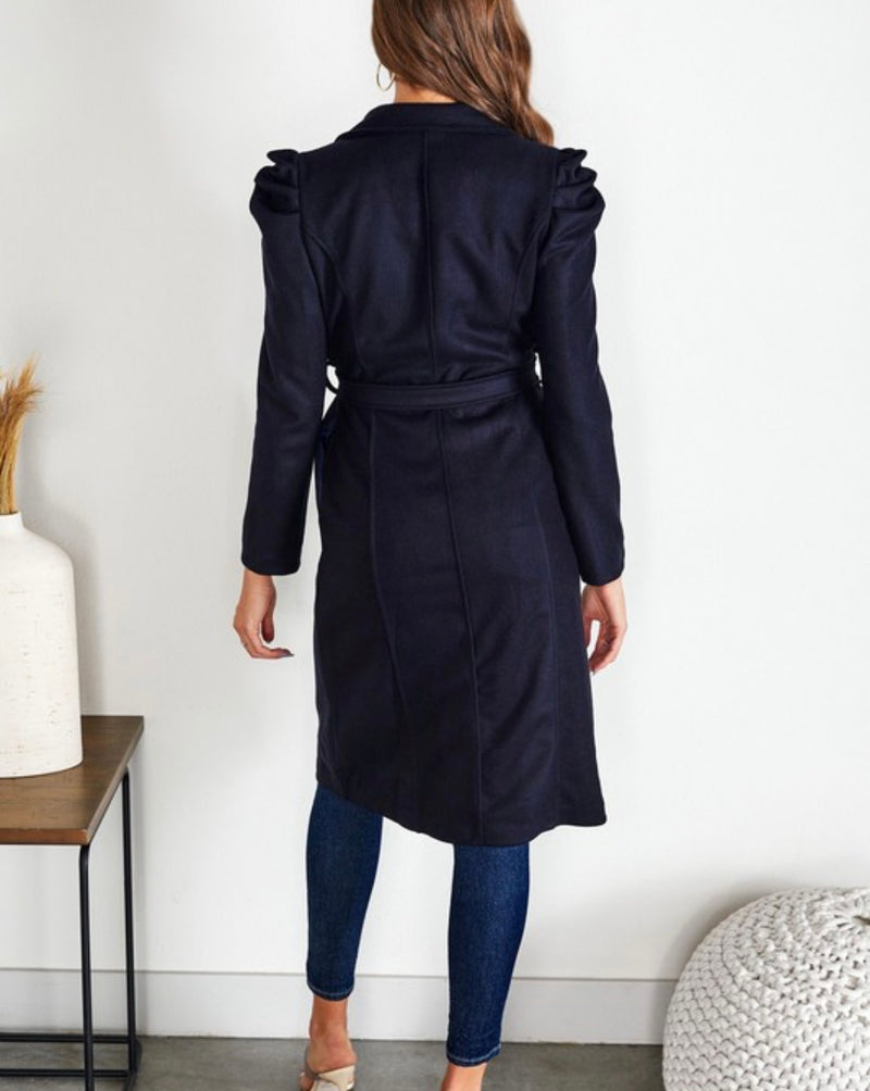 A timeless classic that’s a must have for every winter. This long wool coat is so classy and elevates anyone’s style during the cooler months. Black, long length, two button closure with tie belt, puffy shoulders for a modern touch...