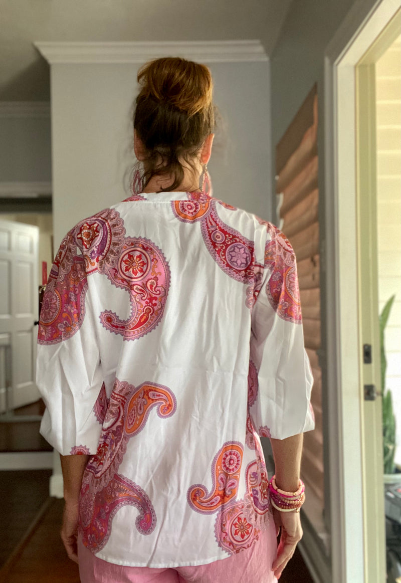 Indulge in this super chic boho top! A must have that can be paired with jeans, shorts or leggings topped off with fun accessories and a cute hat. This top will take you into fall too! Silky feel, v neckline,...