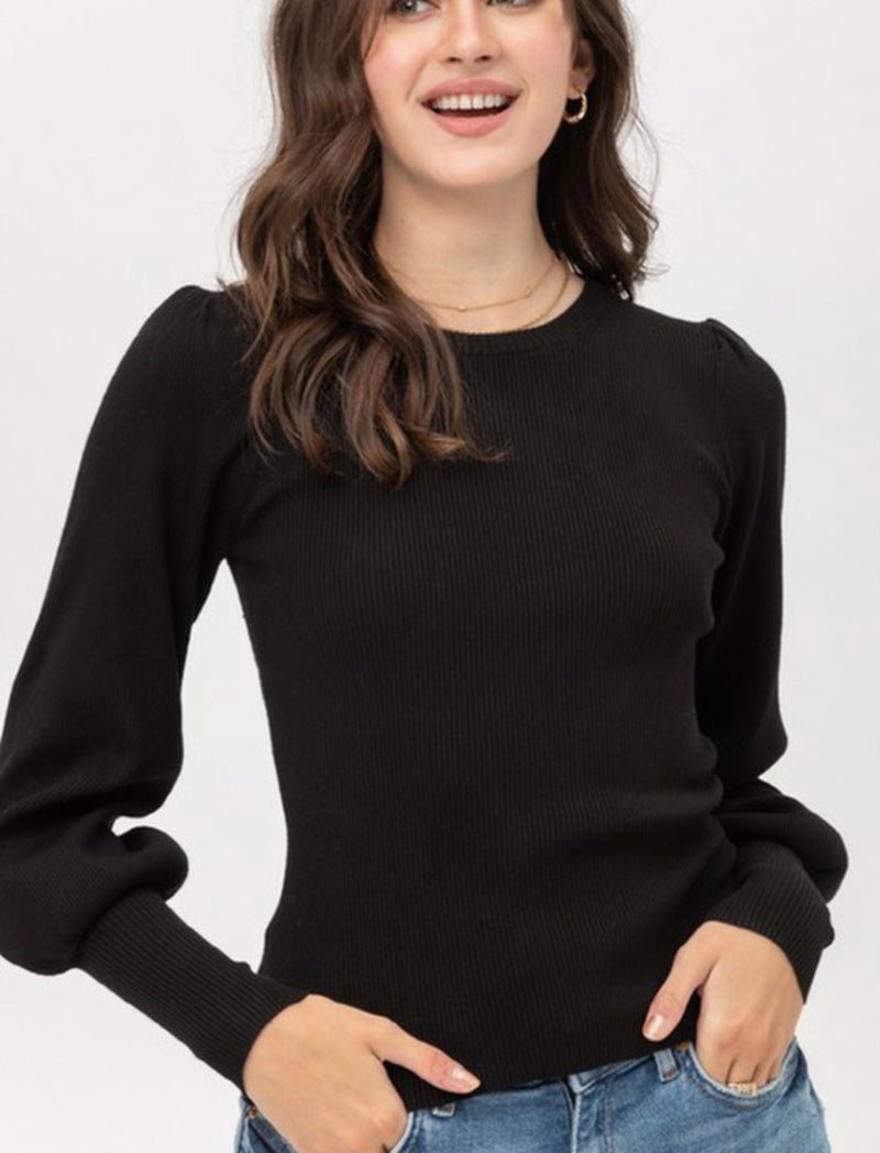 This top is chic and classic. A simple touch of elegance that pairs well with any bottoms. Rib knit material, bishop sleeves, long cuff, and fits just below the waist. Runs true to size! S•M•L•XL. ...