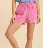 Shorts season is here again and we’re so excited to add grease frayed hem shorts to our Spring collection. The colors are so refreshing and vibrant. These have an elastic waist, show tie in front, front pockets, mineral washed fabric, comfy, frayed hem, and a great length. These run TTS; Jacelle is 5’6 130lbs. 28” waist wearing a small. 13.5” Length, 2.5” inseam 100% Cotton