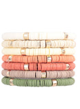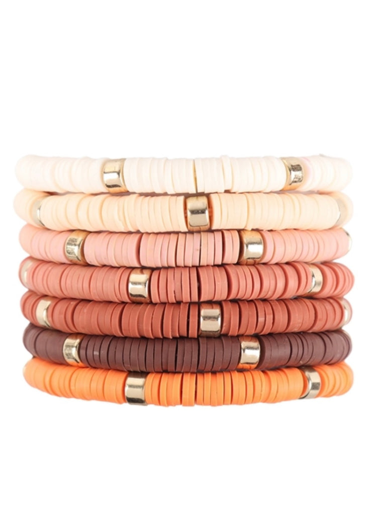 These bracelets have spring and summer written all over them. Each set contains seven beaded stretch bracelets of various stones, line rings, and vibrant colors. It’s arm candy for the season. Sets available in shades of Pink/Taupe/Coral/Mint
